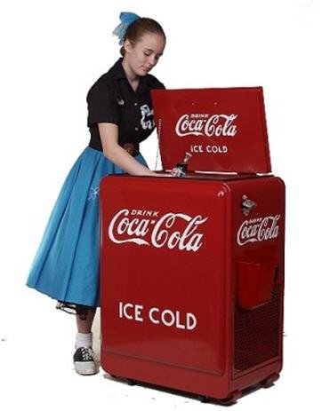 This is an exact replica of the famous Westinghouse Junior Coke Machine that was so popular in the "Mom and Pop" stores of the 1930's and 40's. This self-serve refrigerated floor chest will be quite a conversation piece at your home or office!