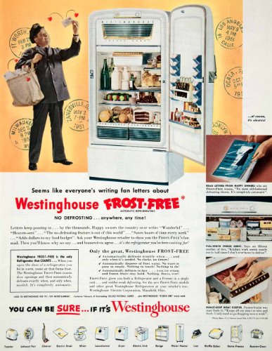 1951 Ad Westinghouse Frost Free Automatic Refrigerator Defrost Mailman Letters - Original Print Ad Review